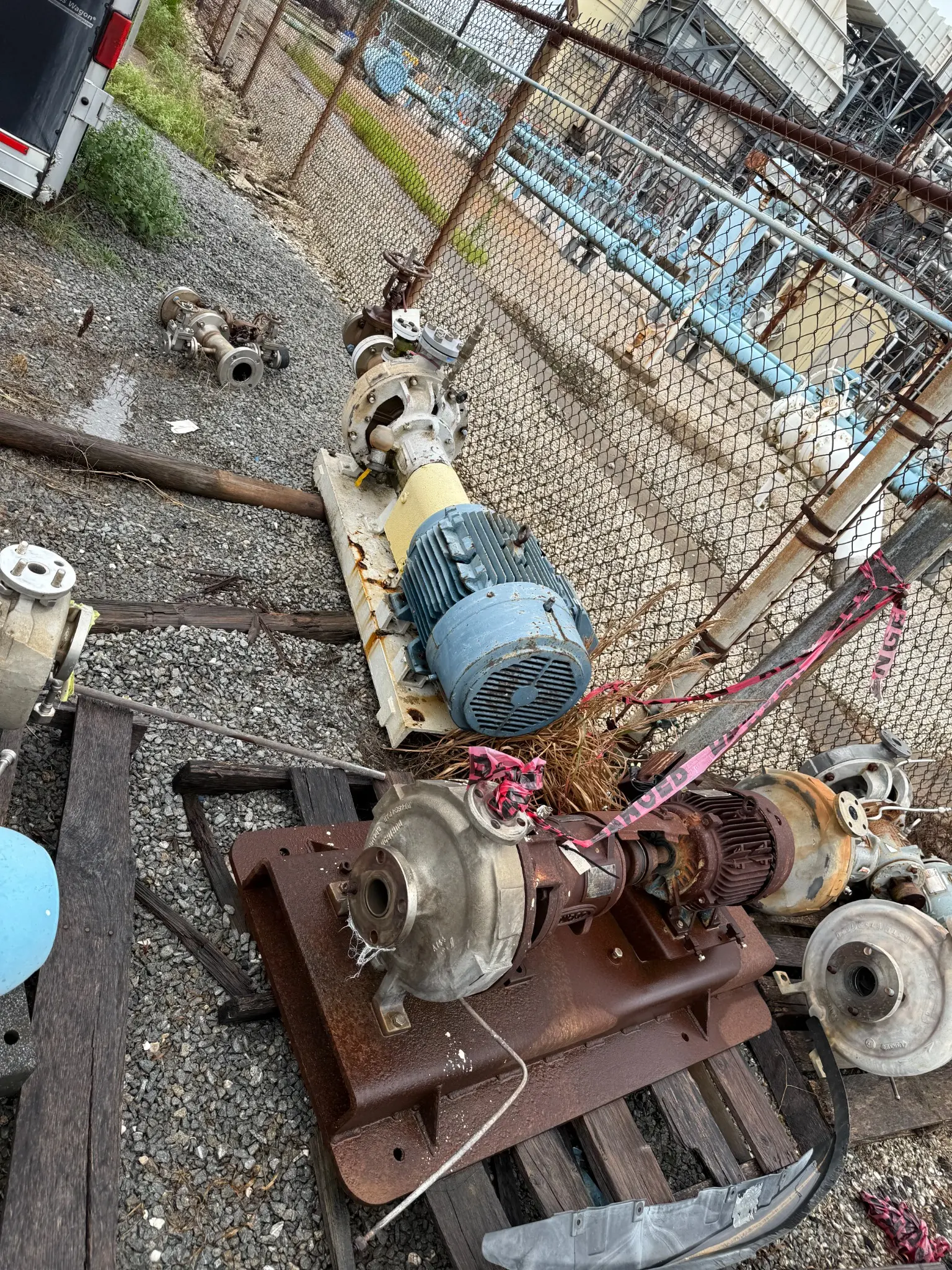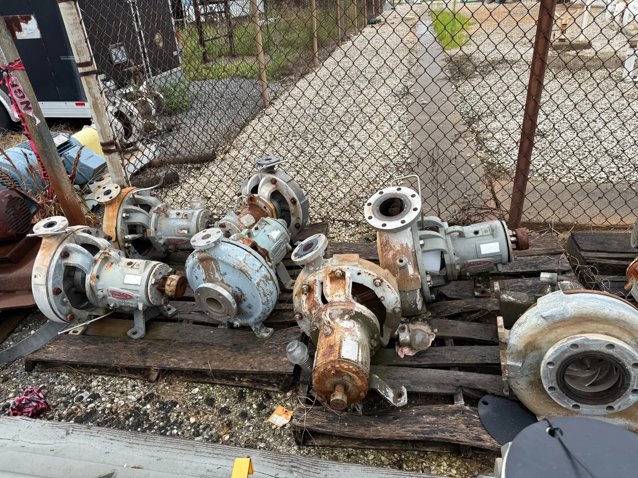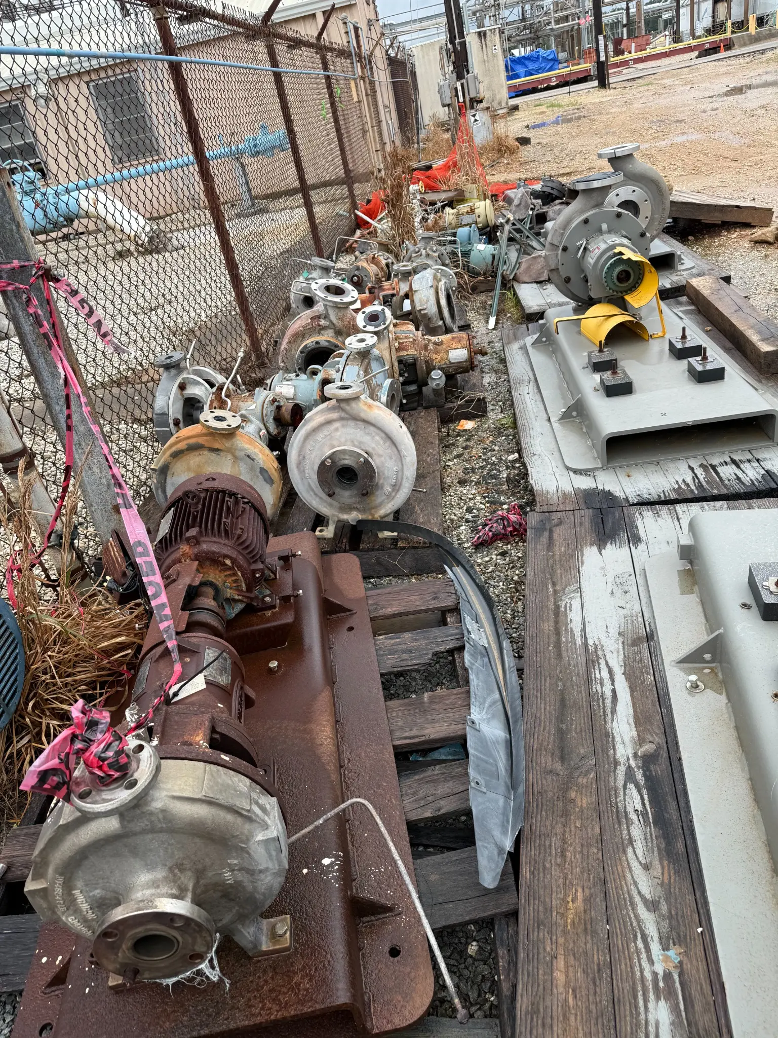 ● Several pumps mounted on skids with motors (3–15 HP range)